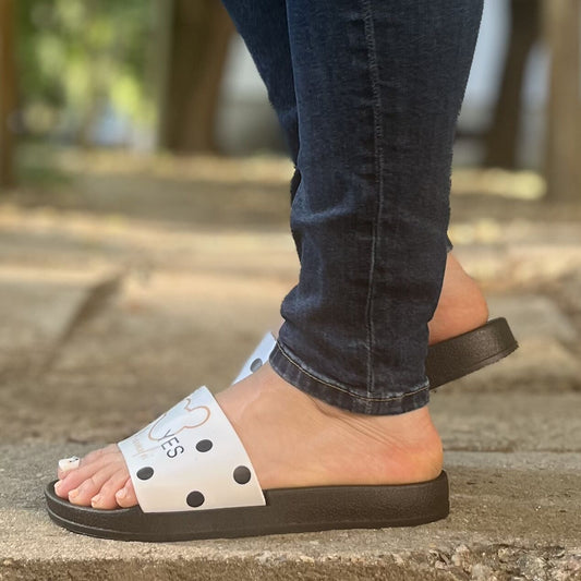 Дамски бели чехли - Mickey - White