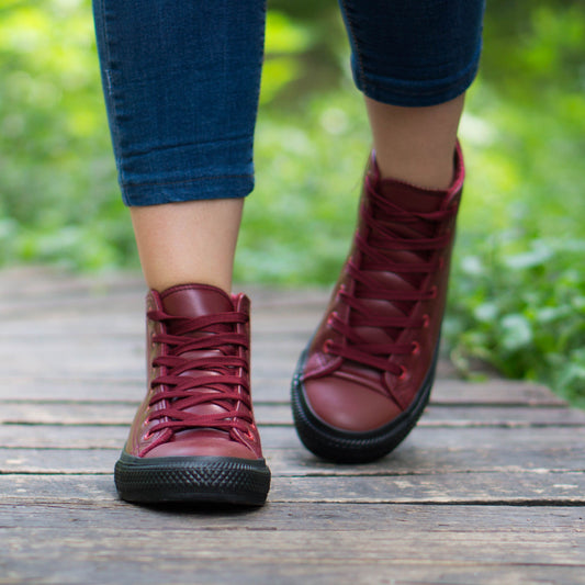 Дамски високи кецове в цвят бордо - Nikol - Wine - Black