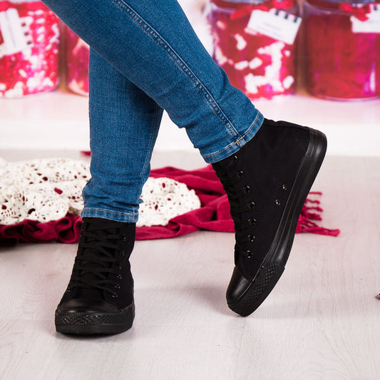Дамски високи, черни маратонки - Imagine - Black