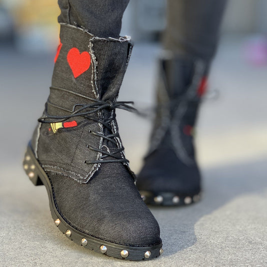 Дамски дънкови, черни боти - Ryella - Black