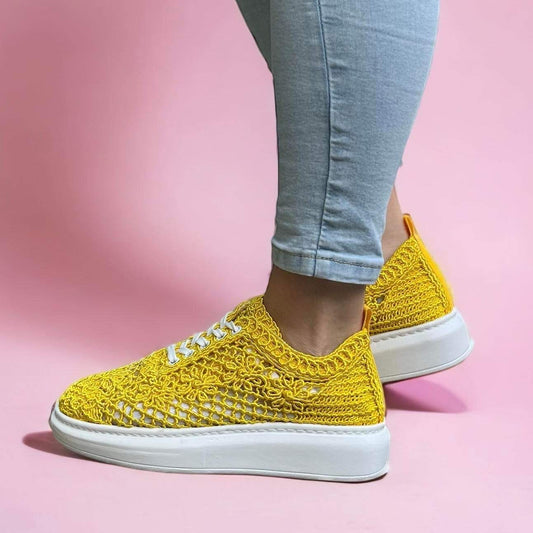 Дамски жълти дантелени маратонки - Gianna - Yellow