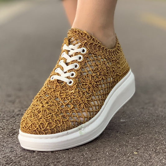 Дамски златисти дантелени маратонки - Gianna - Gold