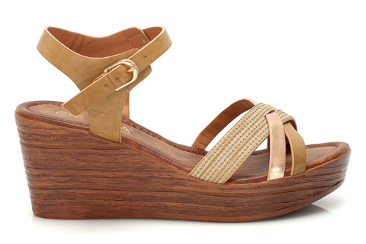 Дамски кафяви сандали на висока подметка - Snana - Camel