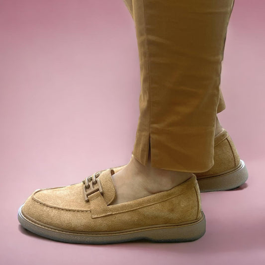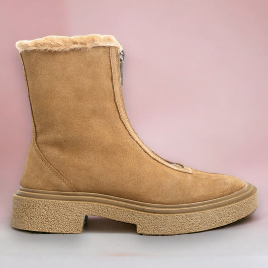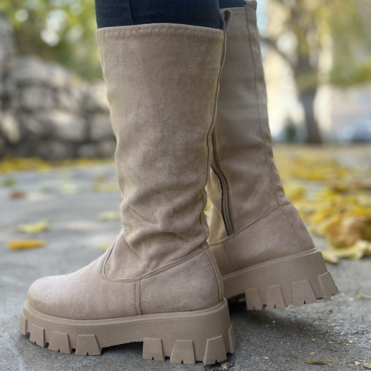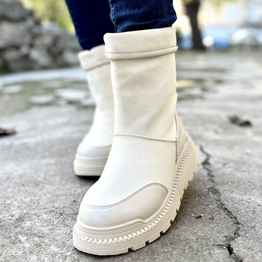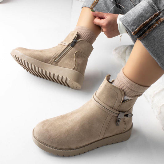 Дамски бежови боти естествен велур - Ann - Beige