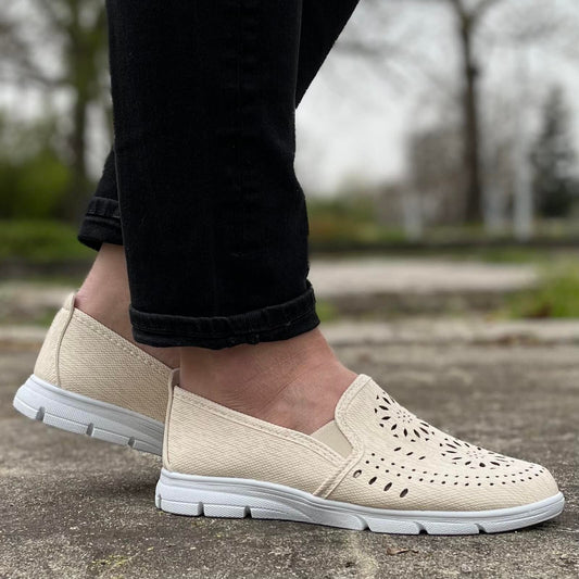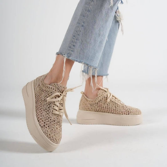 Дамски бежови дантелени маратонки - Haze - Beige