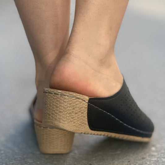 Дамски черни чехли на ток - Lalette - Black