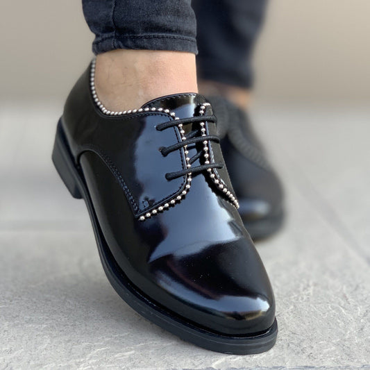 Дамски черни, лачени обувки - Mason - Black