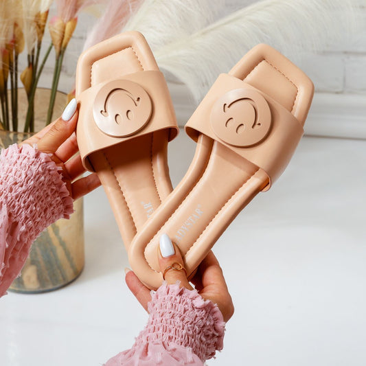 Дамски бежови чехли - Smile - Beige