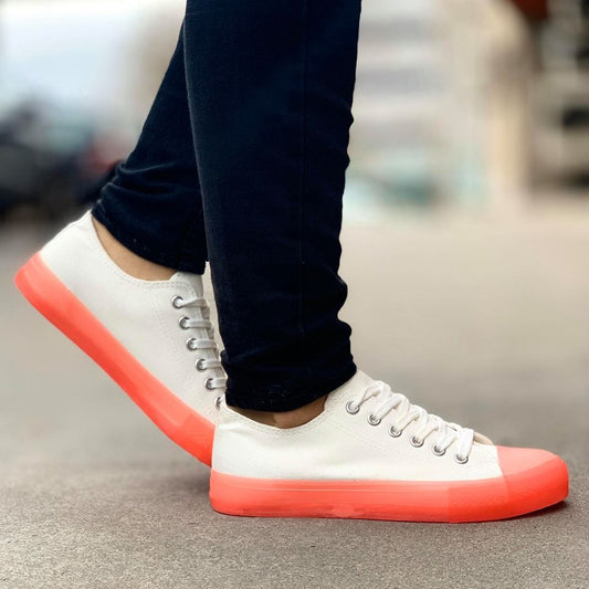 Дамски бели кецове - Mery - Peach Red