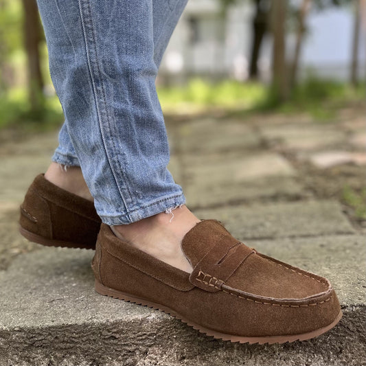 Мъжки кафяви мокасини от естествен велур - Rohan - Brown