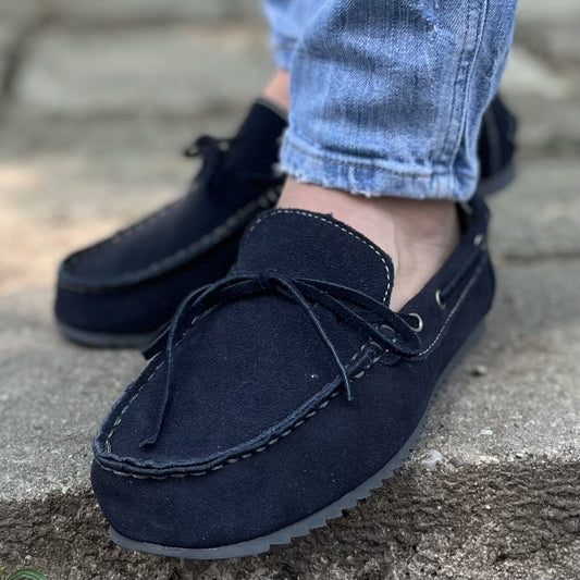Мъжки сини мокасини от естествен велур - Rohan - Blue