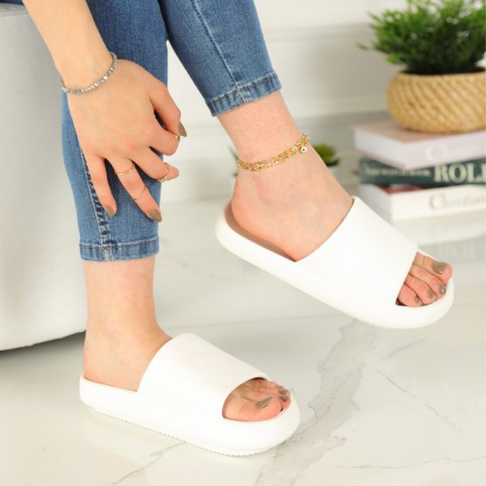 Дамски бели чехли - Alivia - White