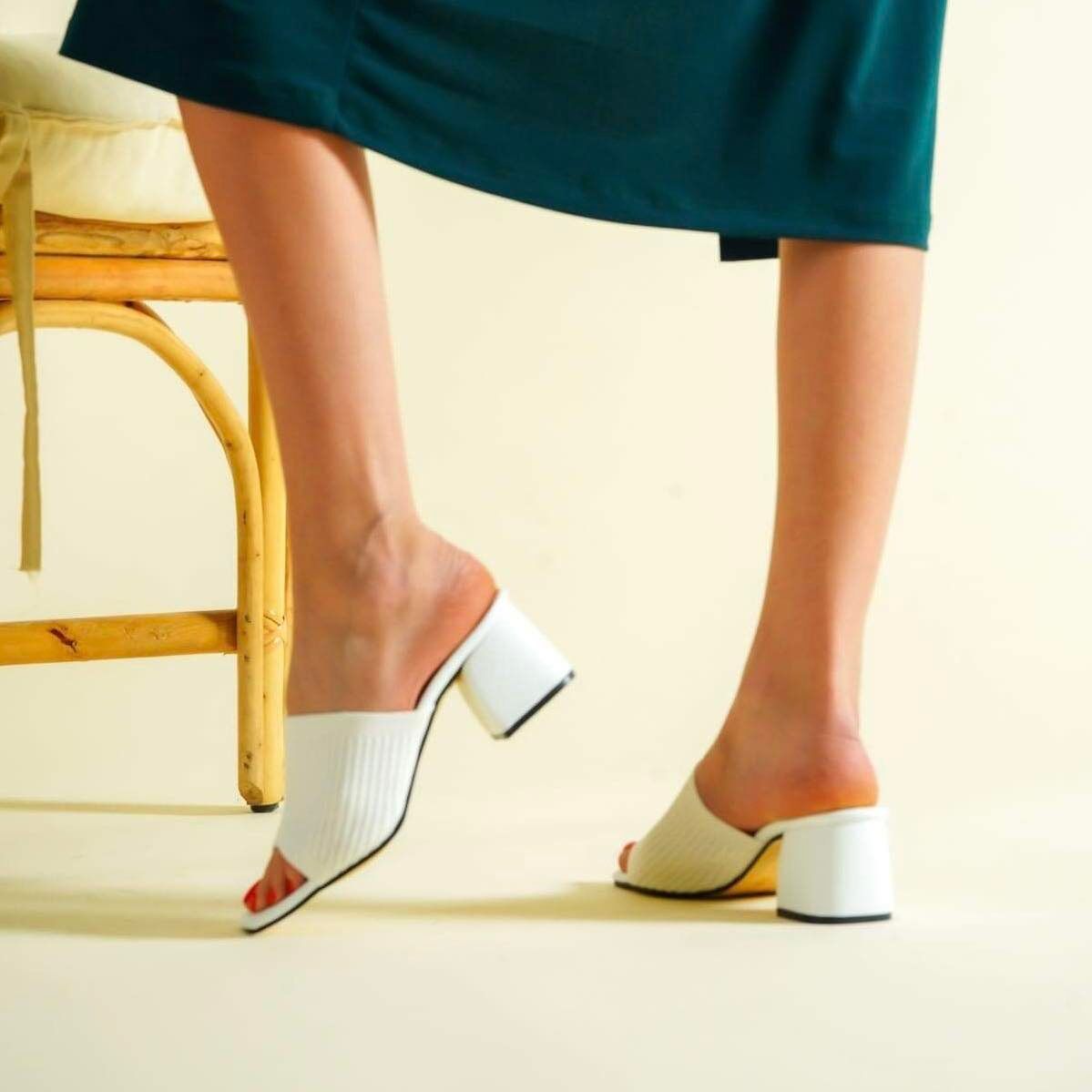 Дамски бели чехли на ток - Suzan - White