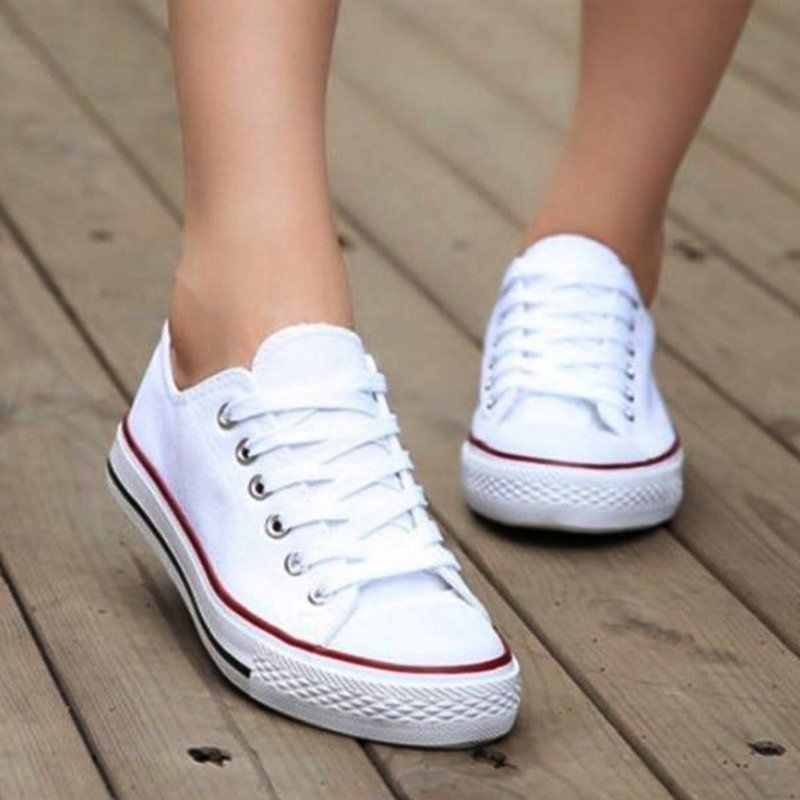 Спортни дамски кецове в бял цвят. Изработени са от плат, а подметката е от гума.
