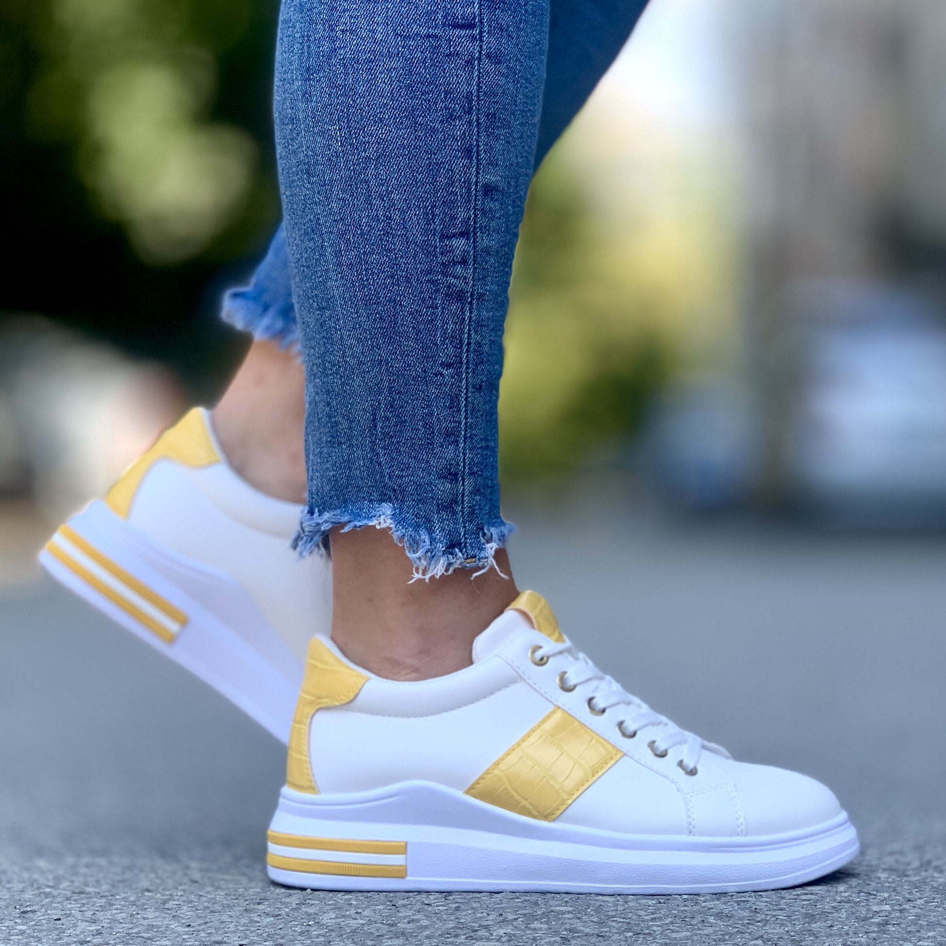 Дамски бели кецове Maura - Yellow