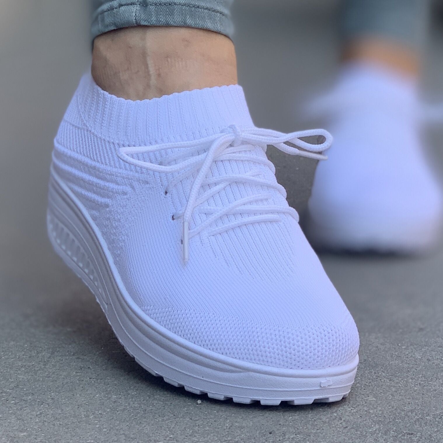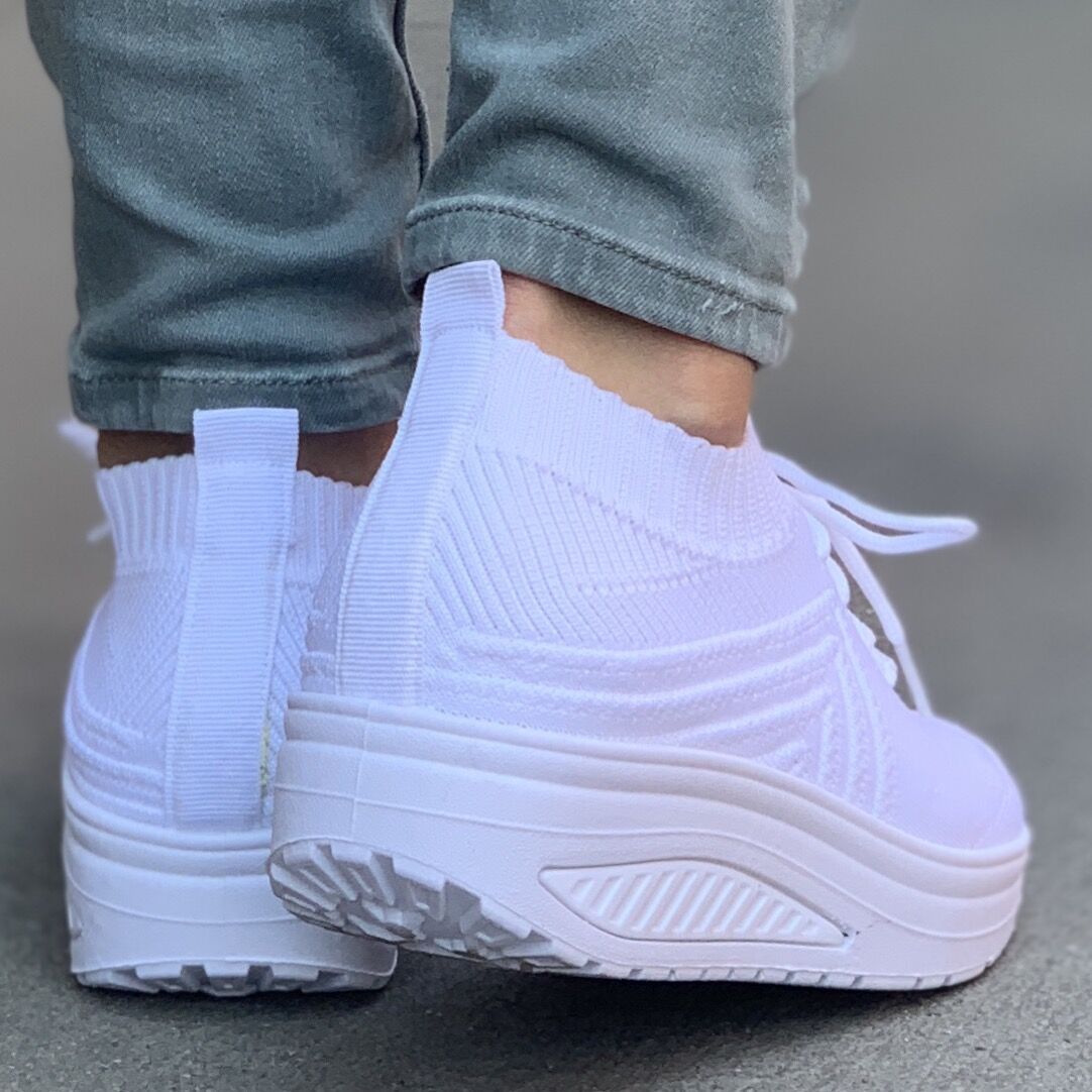 Дамски спортни маратонки в бял цвят.  Маратонките дишащи и са изработени от плат, а подметката е заоблена, което я прави изключително удобна. Стелката е от мемори пяна, а подметката достатъчно мека, за да прекарате целия ден без умора.