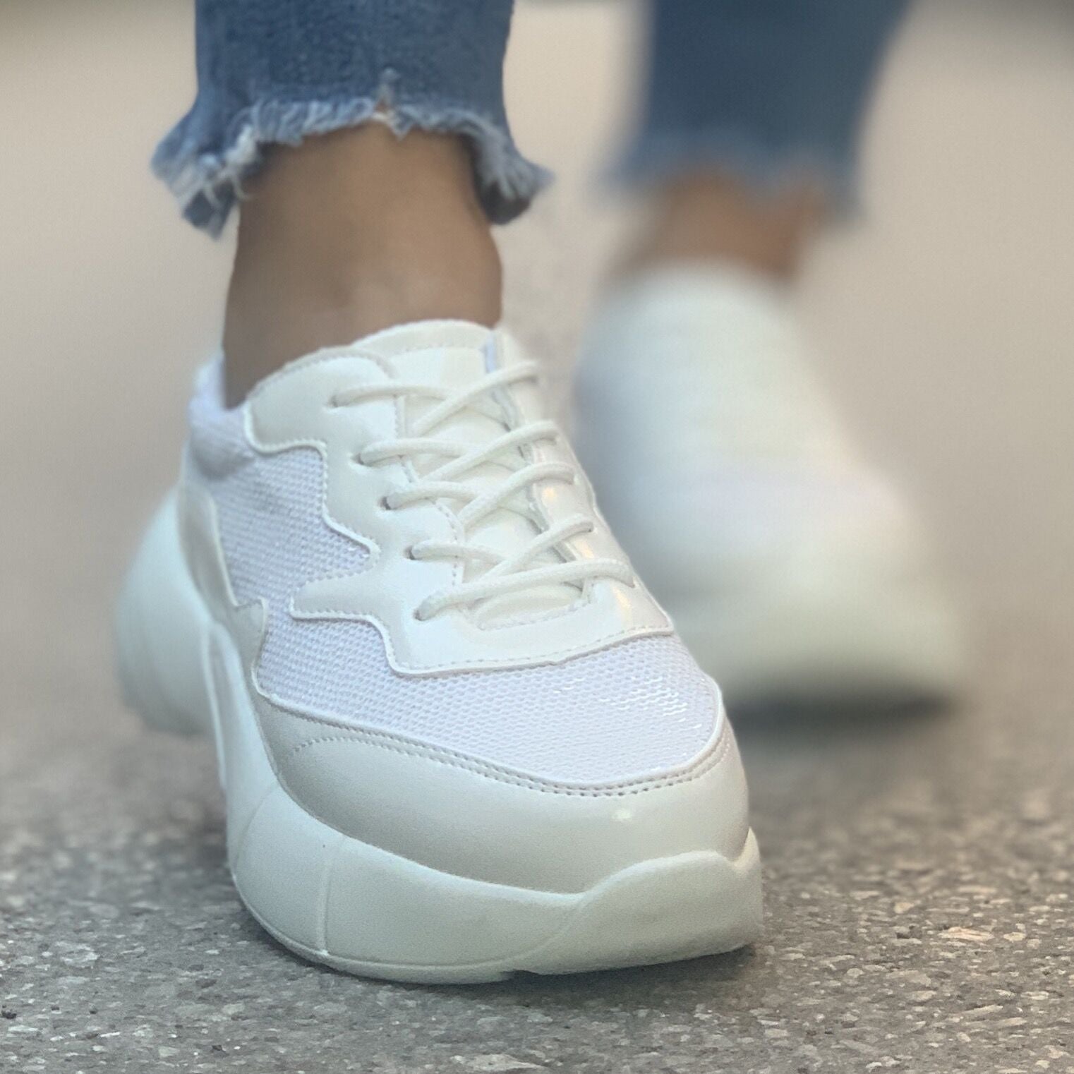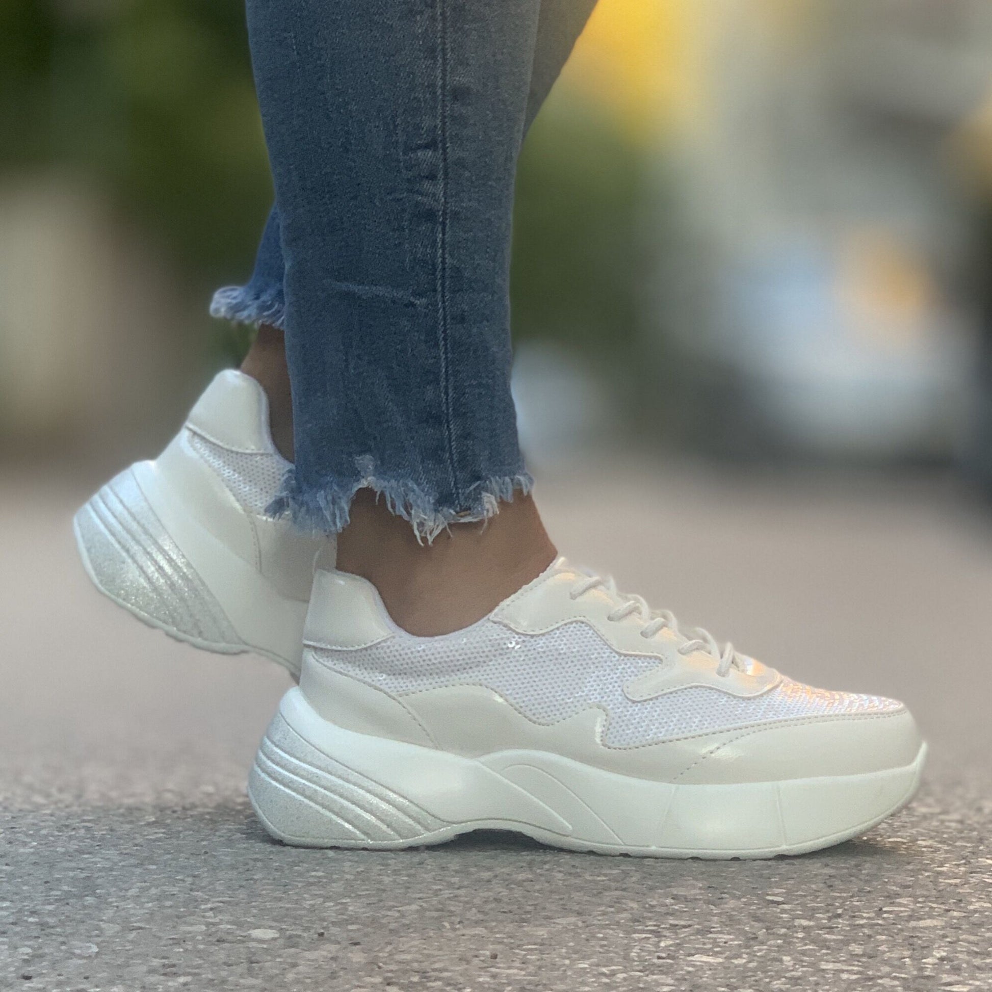 Дамски бели маратонки с пайети - Lena - White