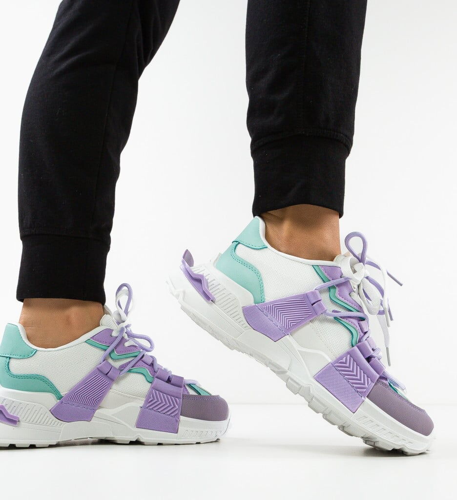 Дамски бели маратонки - Tracy - White - Purple