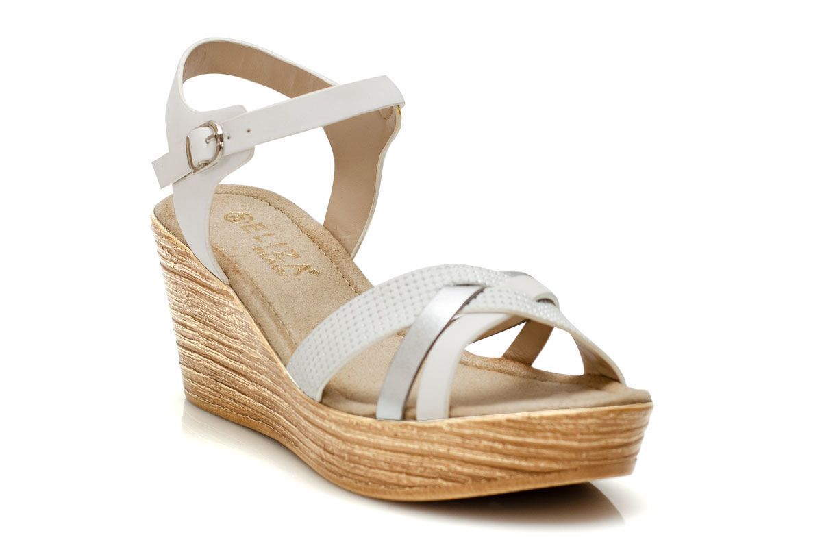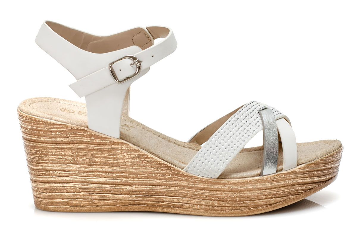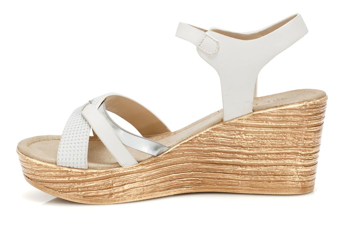Дамски бели сандали на висока подметка - Snana - White