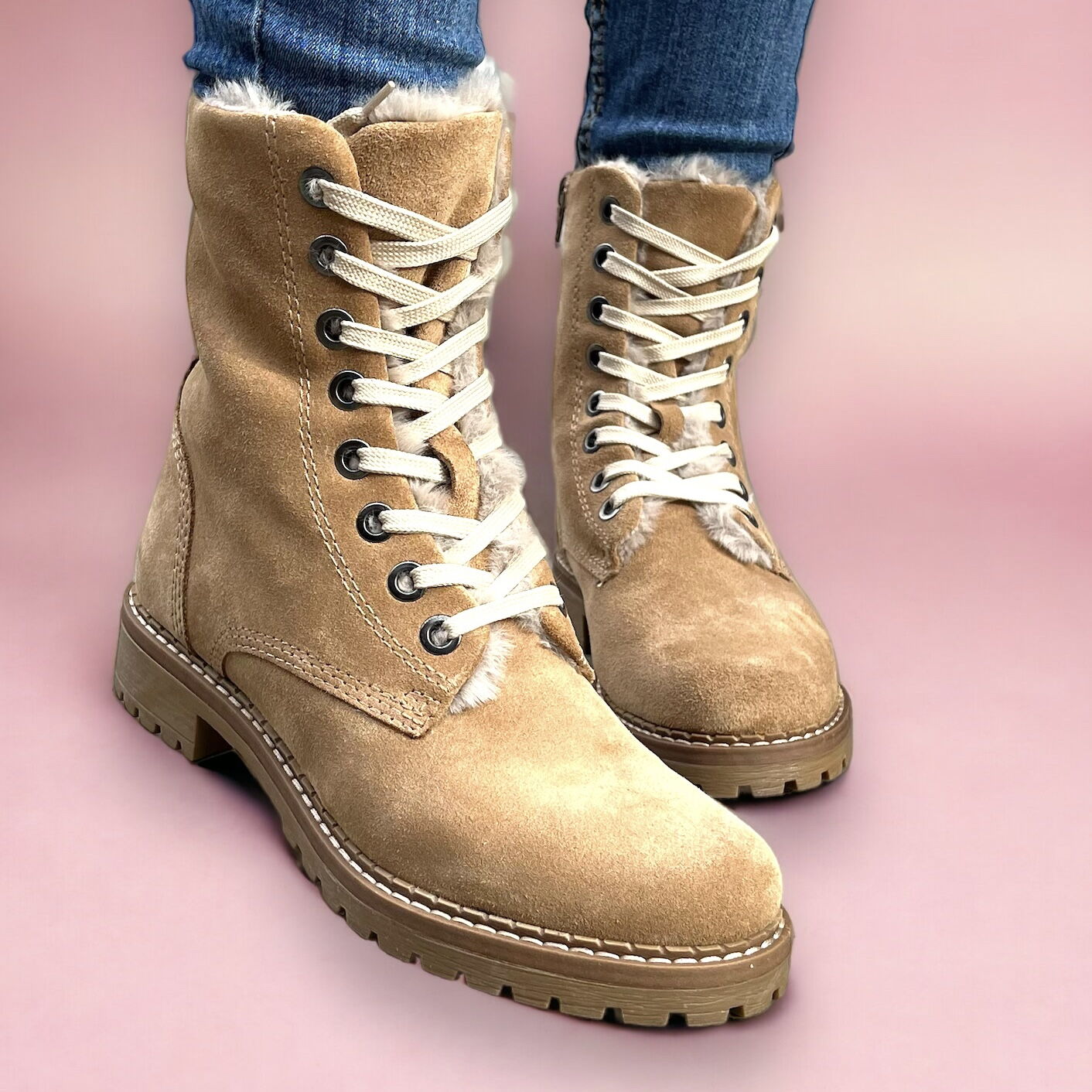 Дамски бежови боти естествен велур - Ann - Beige