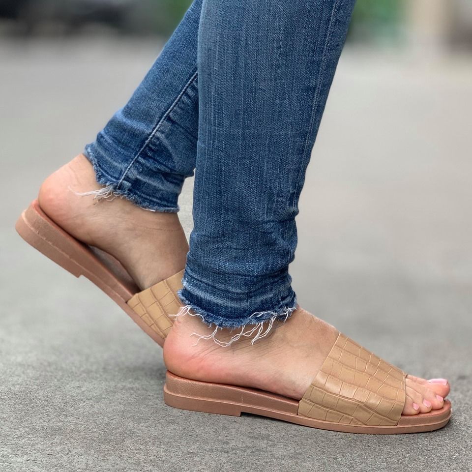 Дамски бежови чехли - Leona - Beige