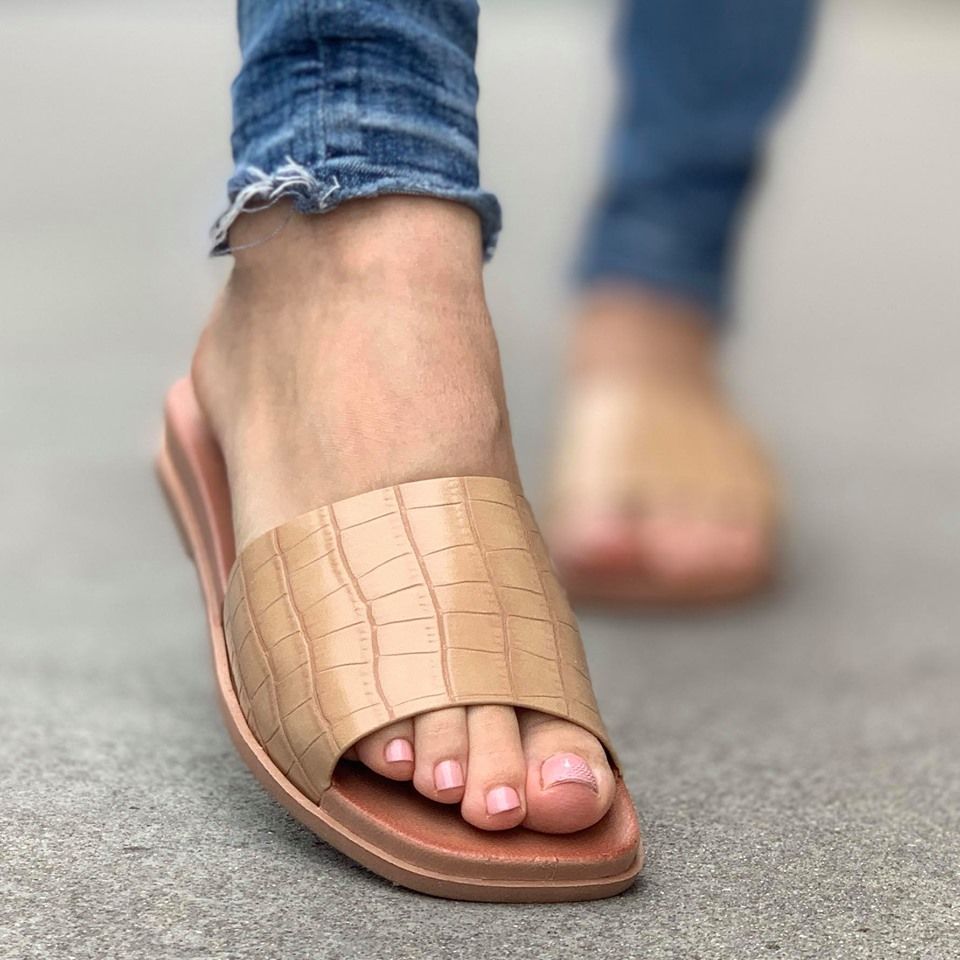 Дамски чехли в бежов цвят с ортопедична стелка и олекотена  подметка . Модела е изработен от еко кожа. Чехлите са достатъчно удобни и комфортни за да прекарате деня си.
