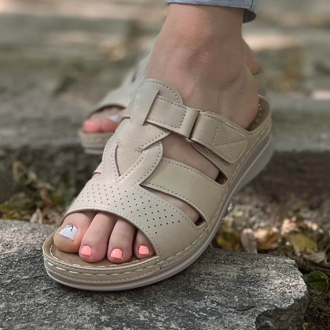 Дамски бежови чехли - Robertina - Beige