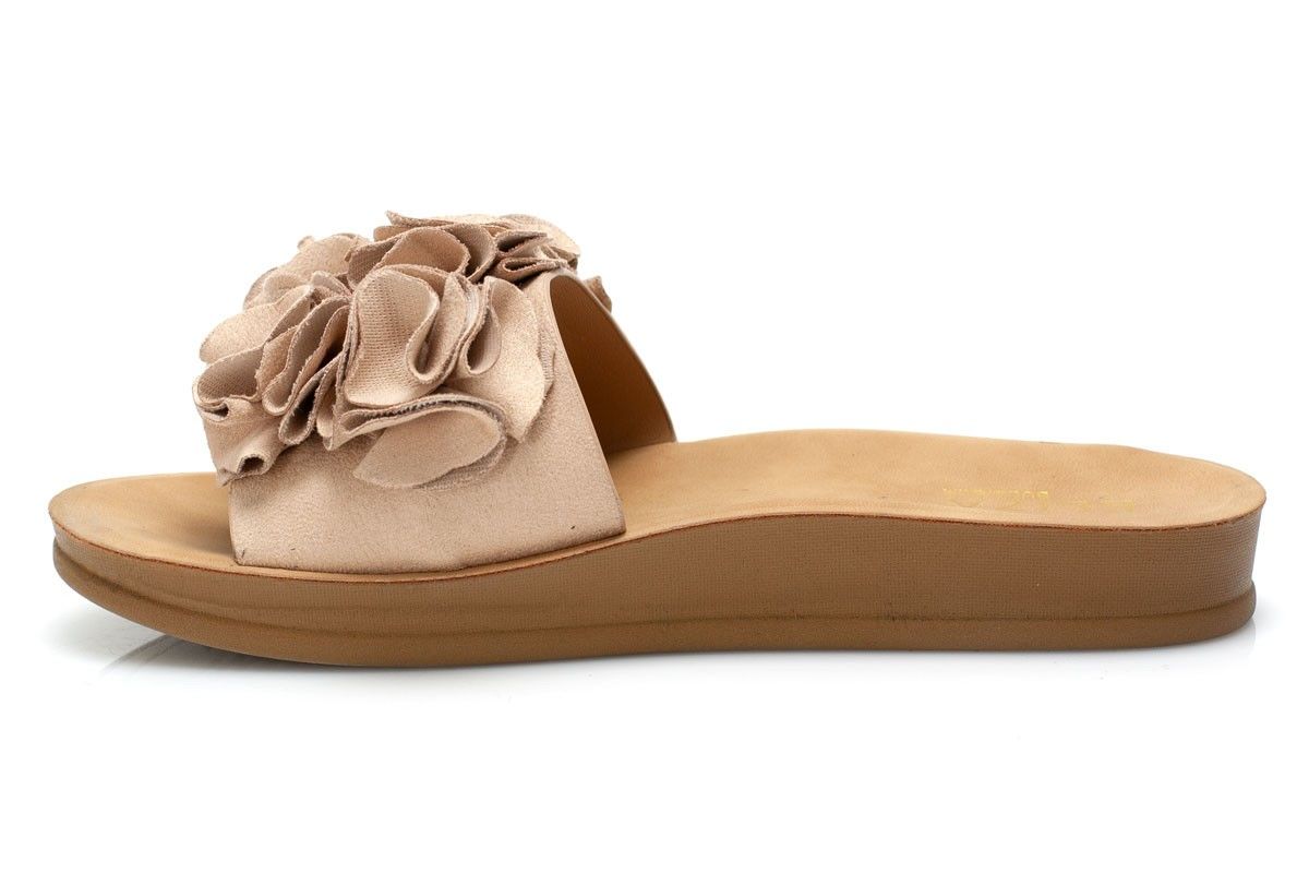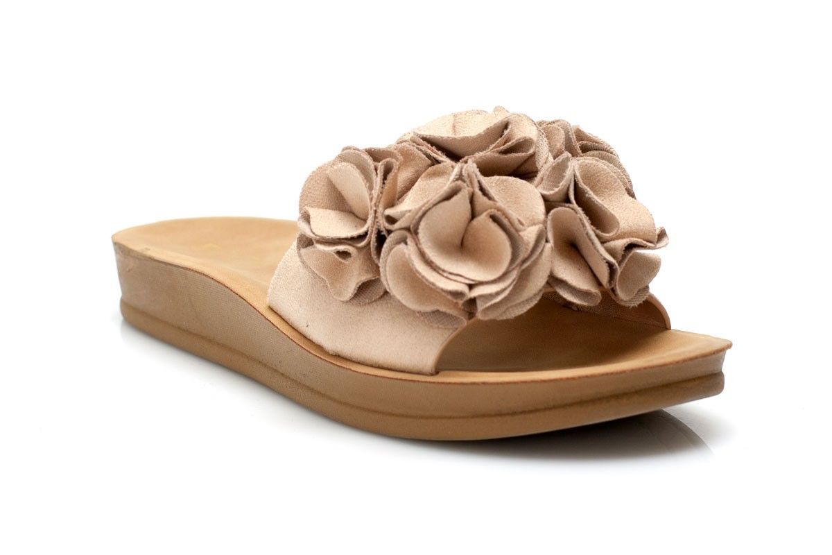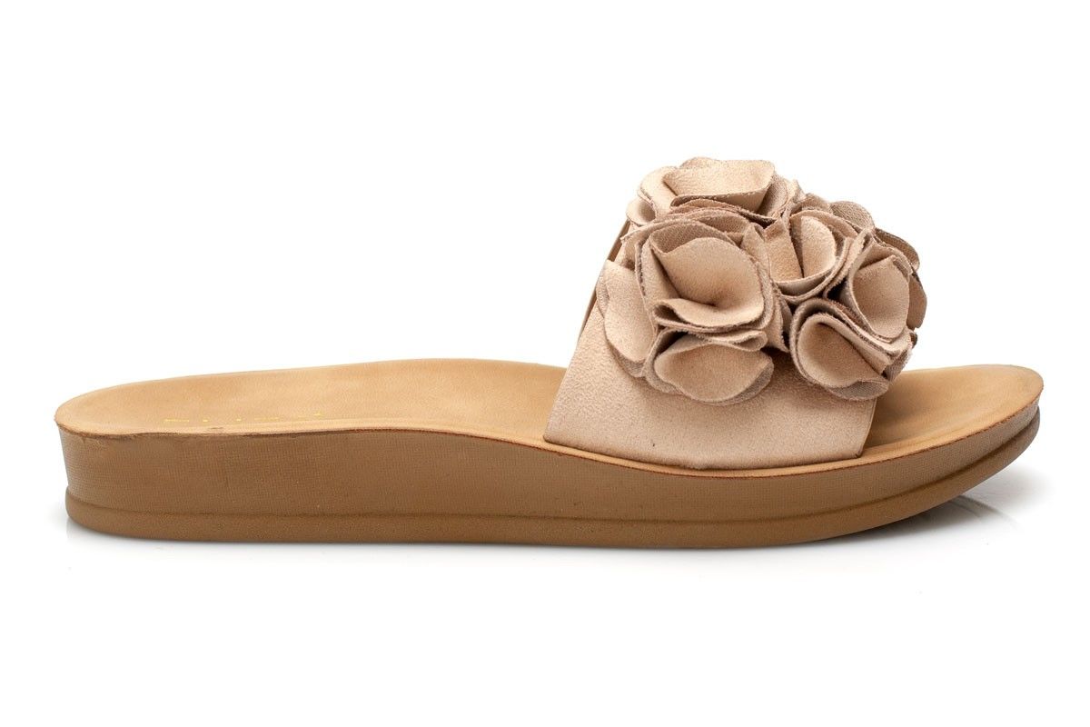 Дамски бежови чехли с велурени цветя - Flo - Beige