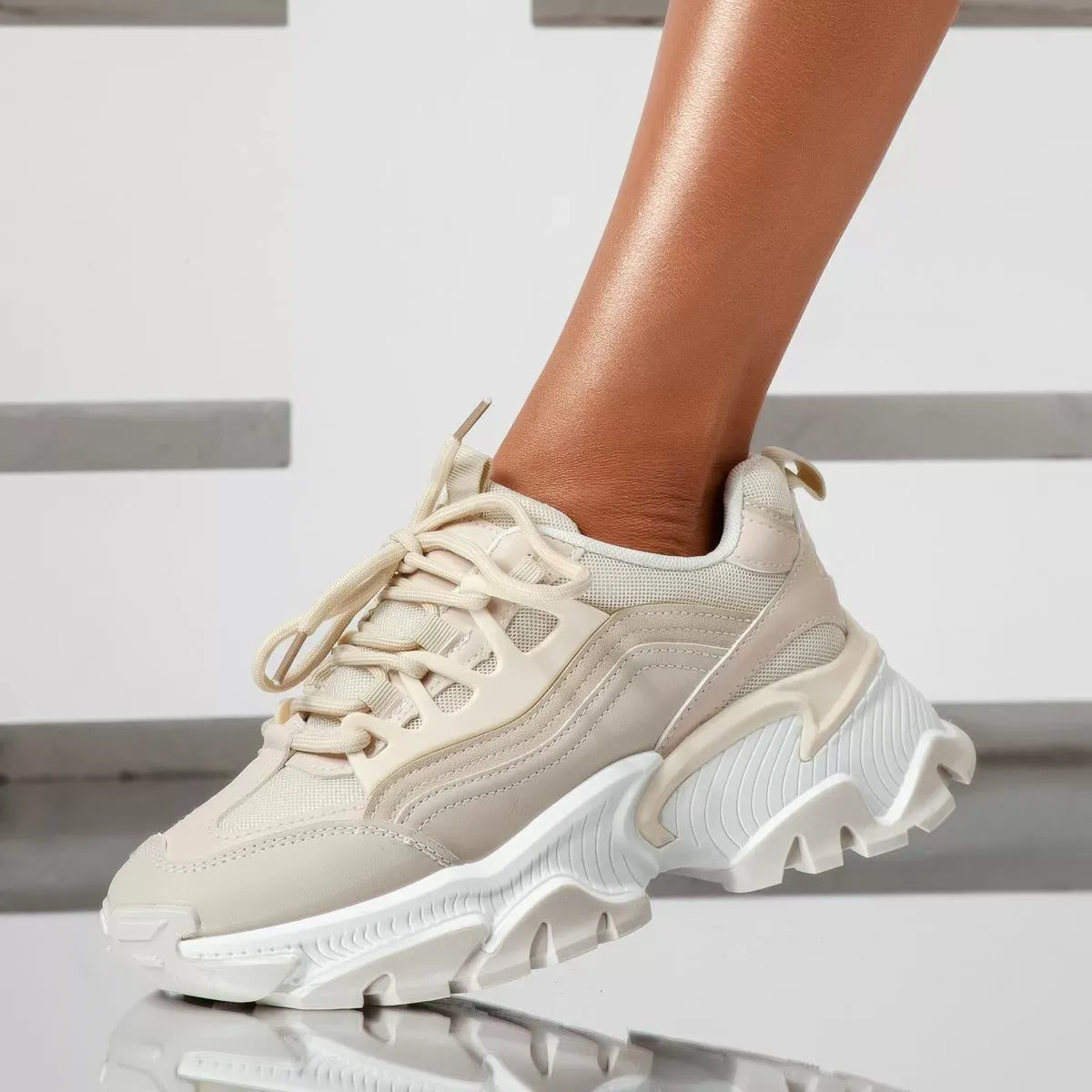Маратонките са в неутралния, но все пак модерен цвят - бежово. Този цвят е идеален за сезона, като предоставя възможност за лесно комбиниране с различни облекла. Дизайнът е стилен и агресивен, подходящ за различни поводи.