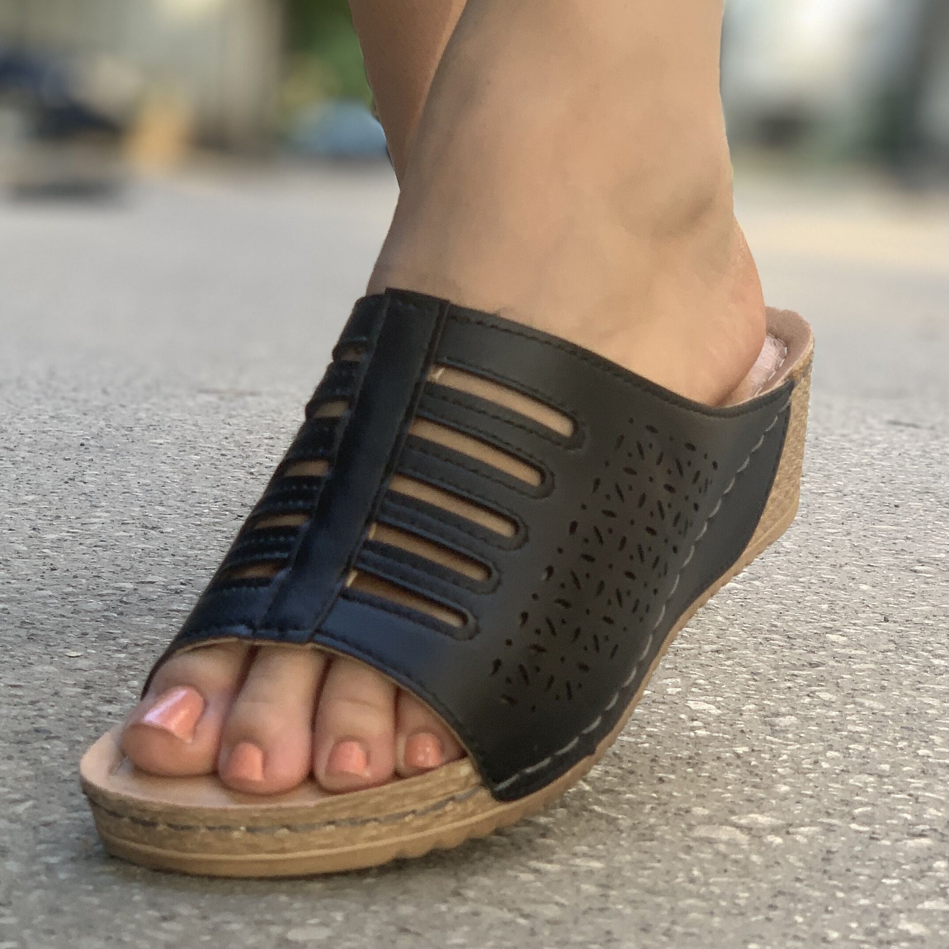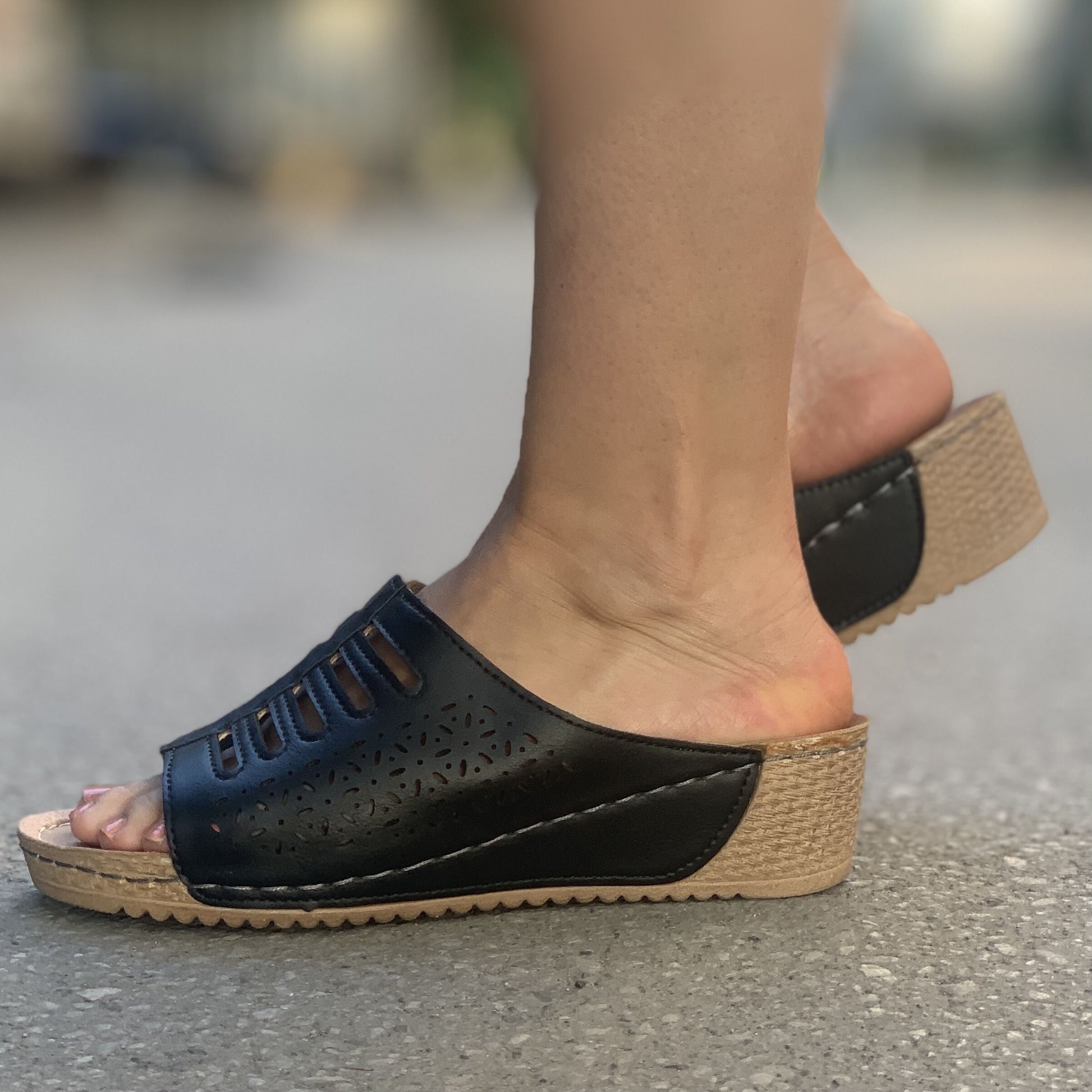 Дамски черни чехли на платформа - Blinda - Black