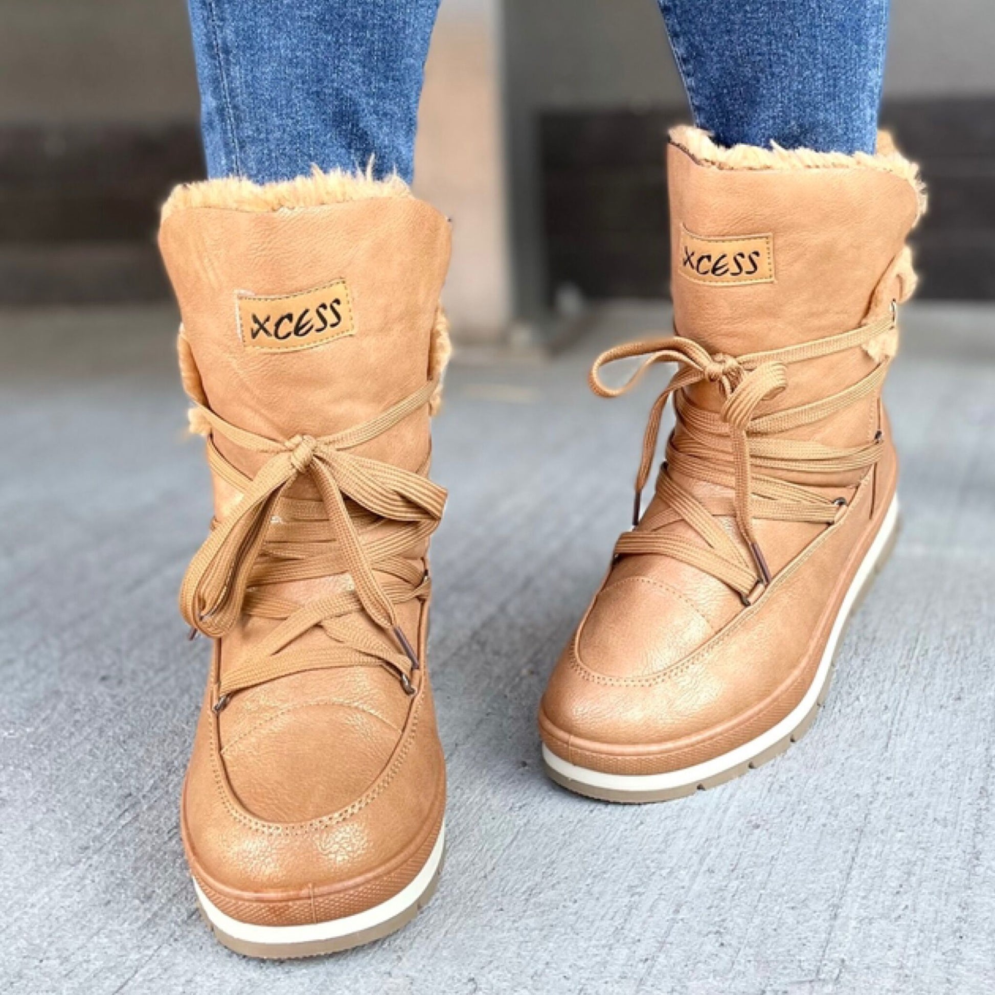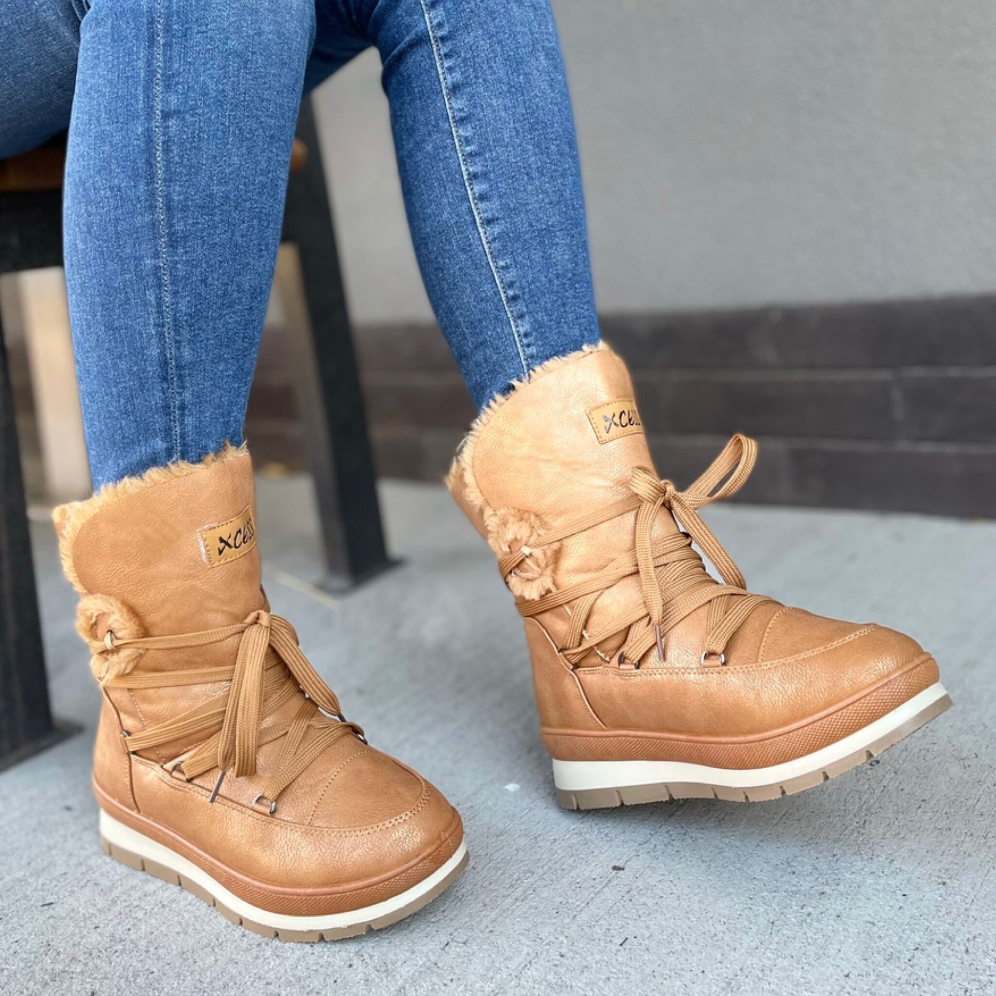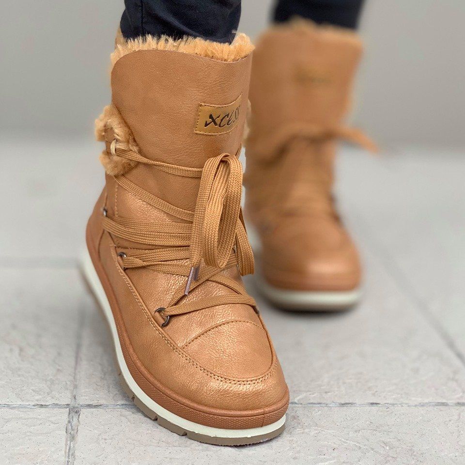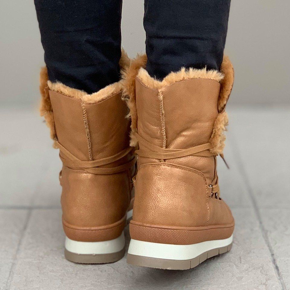 Ежедневни дамски апрески в кафяв цвят. Изработени са от  еко кожа, а отвътрешната страна с дебел пухен хастар .  Модела е топъл и подходящ за по-студените зимни дни.