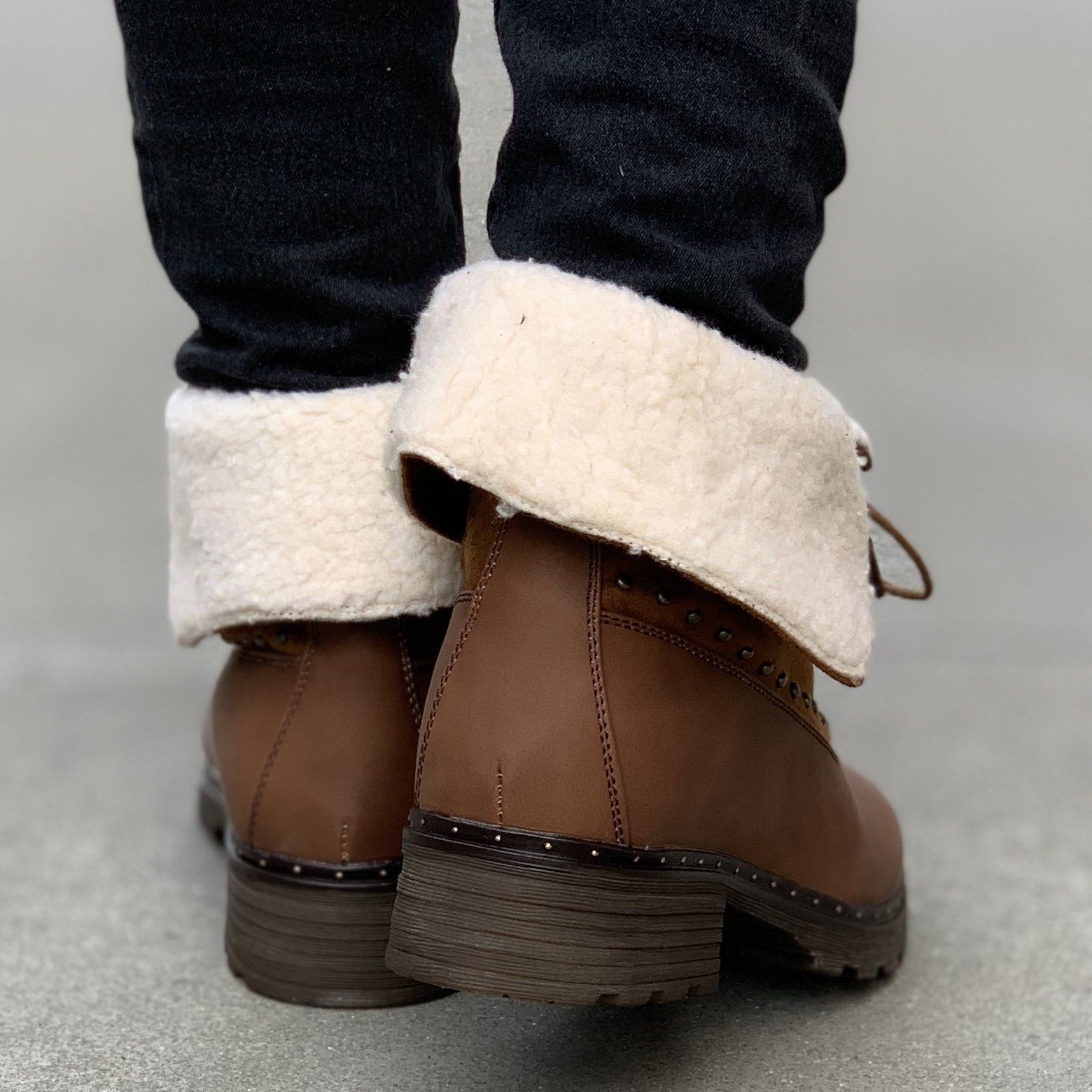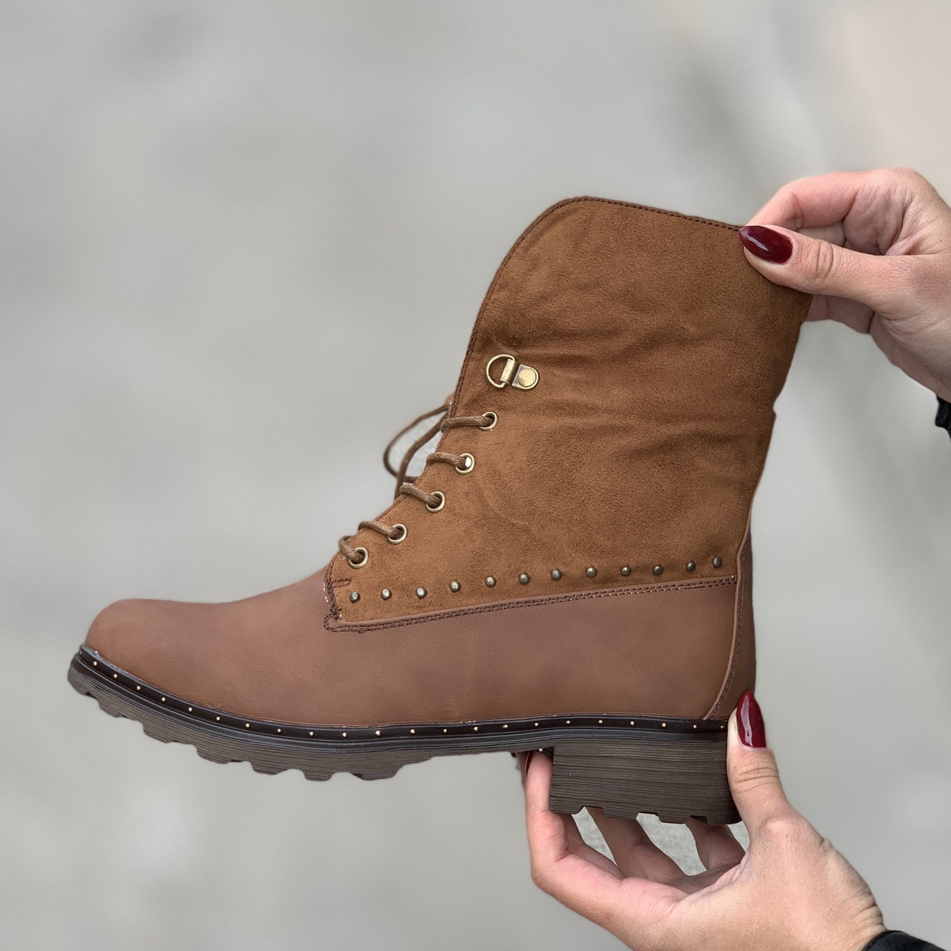 Ежедневни дамски боти в кафяв цвят. Изработени са от  еко кожа, а отвътрешната страна са с дебела подплата .  Модела е с цип и връвки, уникален, изчистен дизайн  и се обуват много лесно. Обувките са подходящи за по - студените зимни дни.