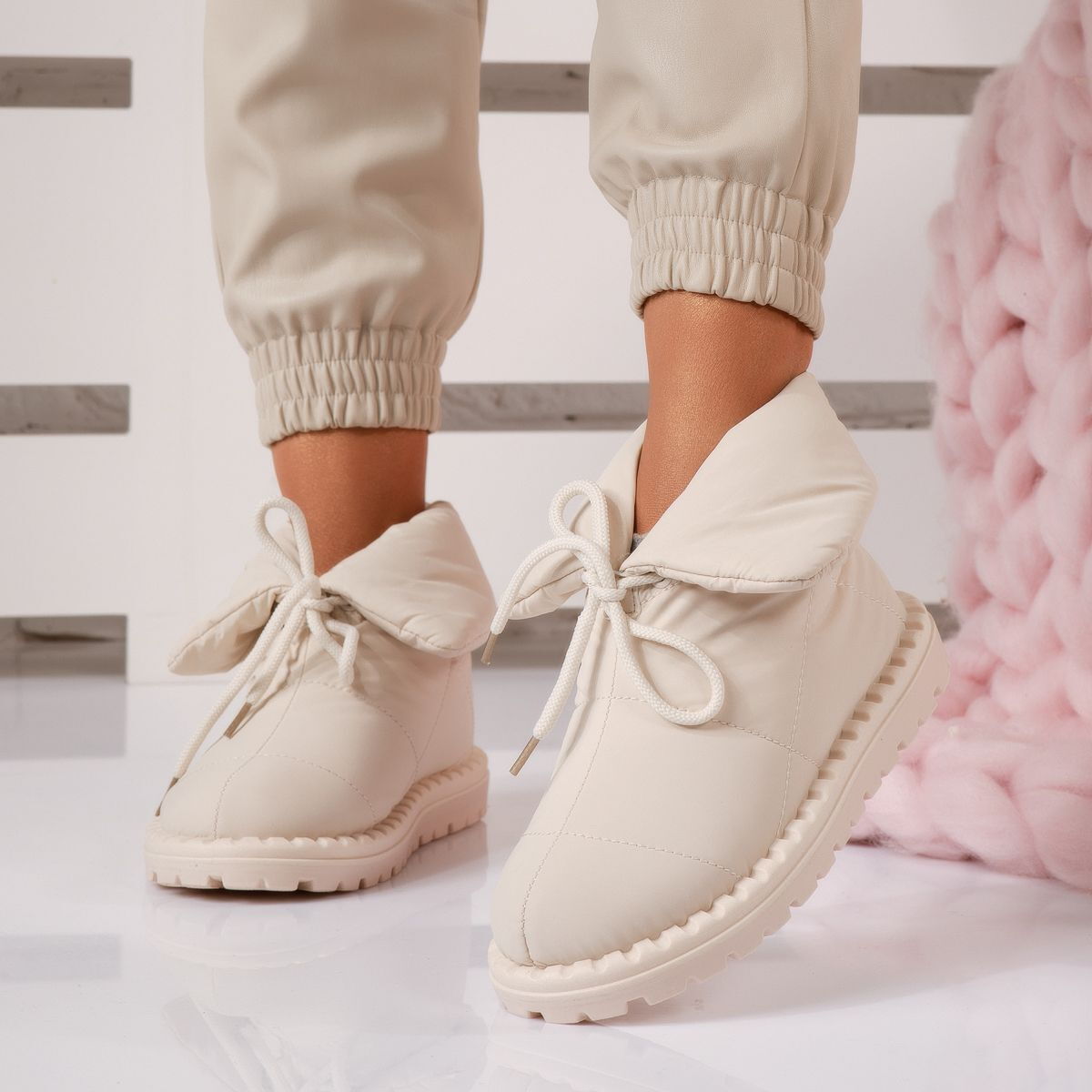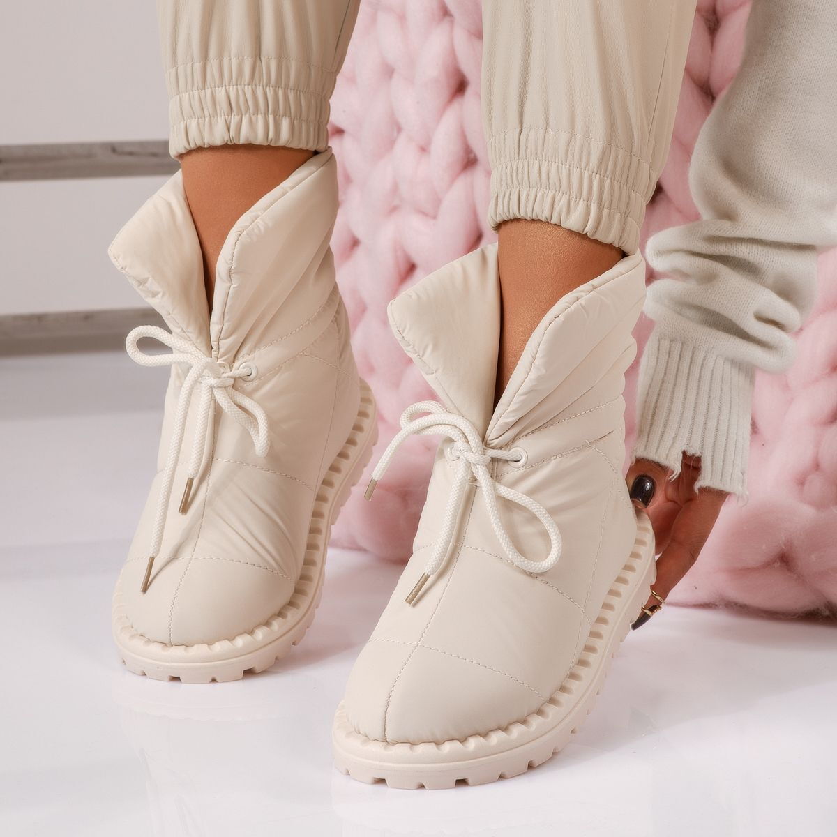 Изработени от издръжливи материали, които запазват своя вид и качество дори след многократна употреба, тези дамски апрески са инвестиция, която ще ви служи сезон след сезон. Водоустойчивият шушляк защитава от влага и сняг, докато здравата подметка осигурява стабилност и предпазва от подхлъзване.