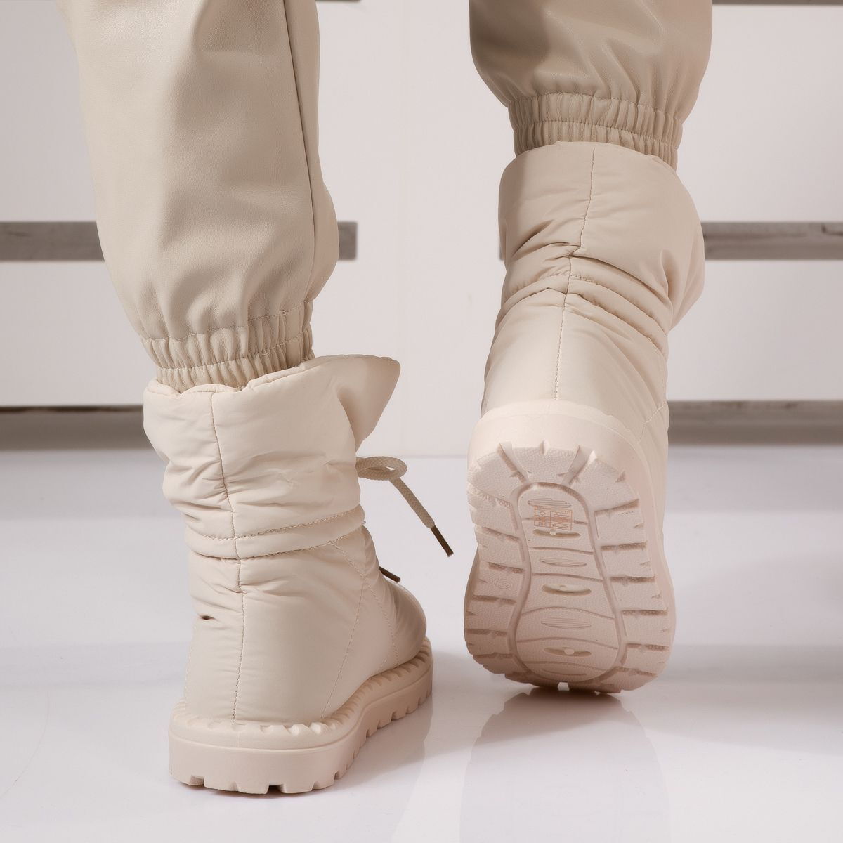 Елегантният бежов цвят и модерният дизайн правят тези дамски ботуши универсални и лесни за комбиниране. Носете ги с дънки и пухено яке за casual визия или с елегантно зимно палто за по-изискан стил. Каракуловата подплата не само осигурява топлина, но добавя и нотка на лукс към всеки ваш зимен тоалет.