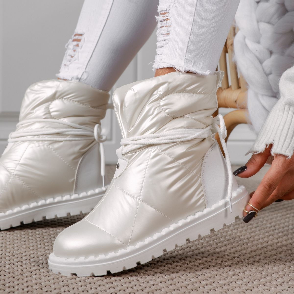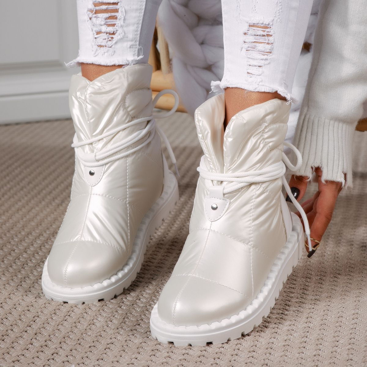 Не правете компромис между стил и комфорт през зимата. Дамските шушлякови апрески с каракул Remi в бяло са инвестиция в качество, топлина и елегантност. Подходящи за всякакви зимни условия, тези ботище станат вашият любим избор за сезона.