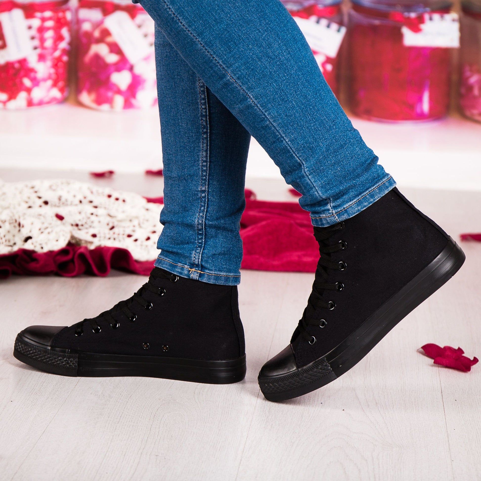 Спортни дамски кецове в черен цвят . Изработени са от плат, а подметката е от гума.