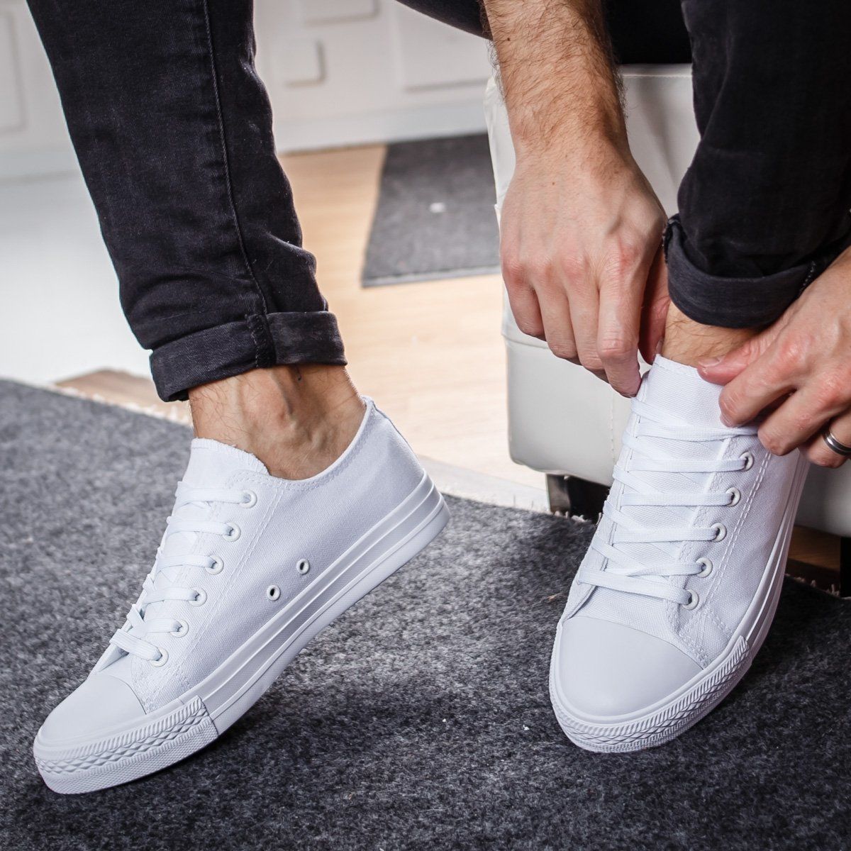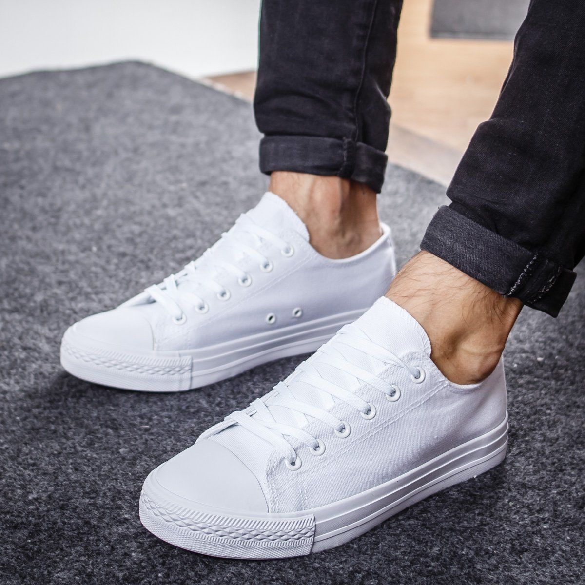 Спортни мъжки кецове в бял цвят . Изработени са от плат, а подметката е от гума.