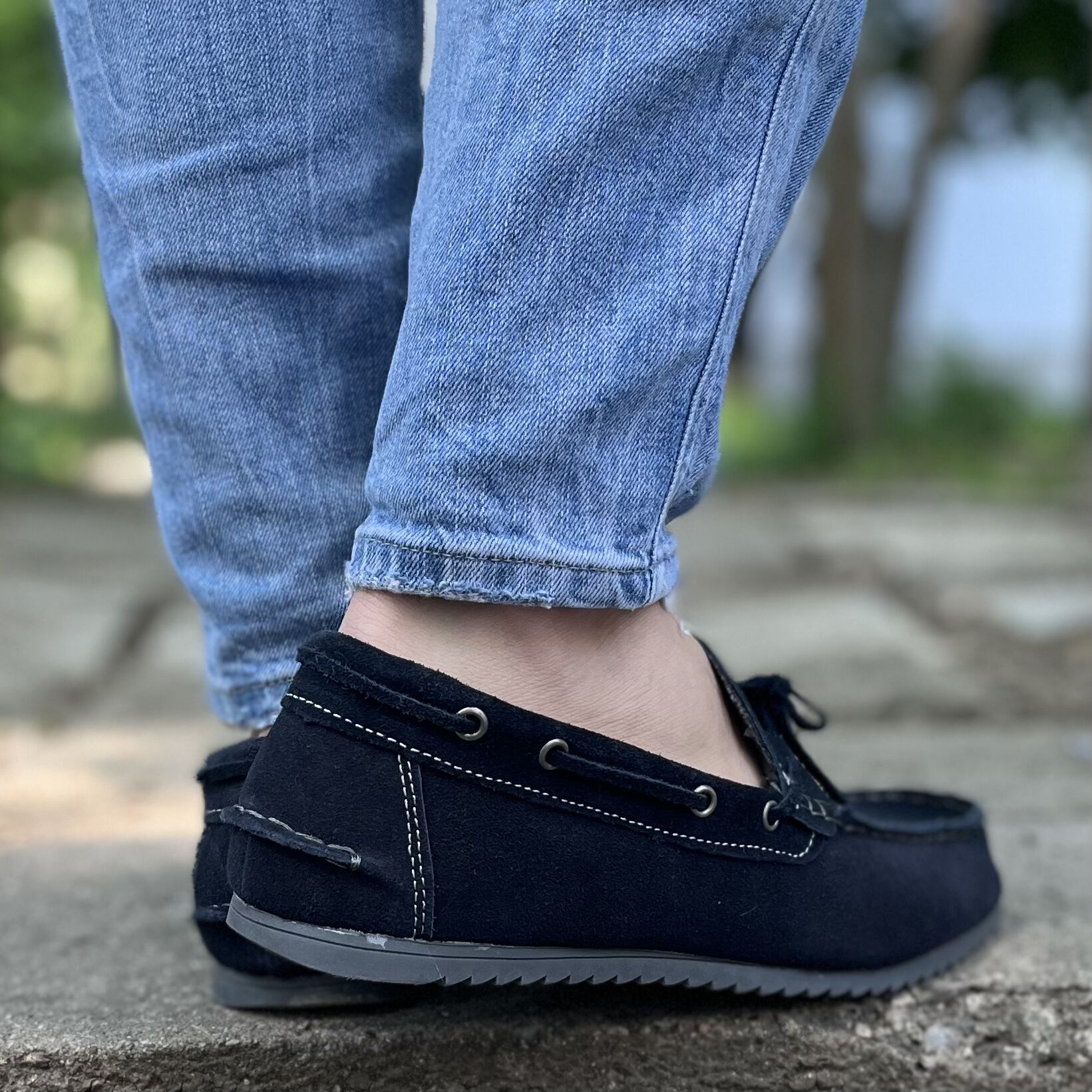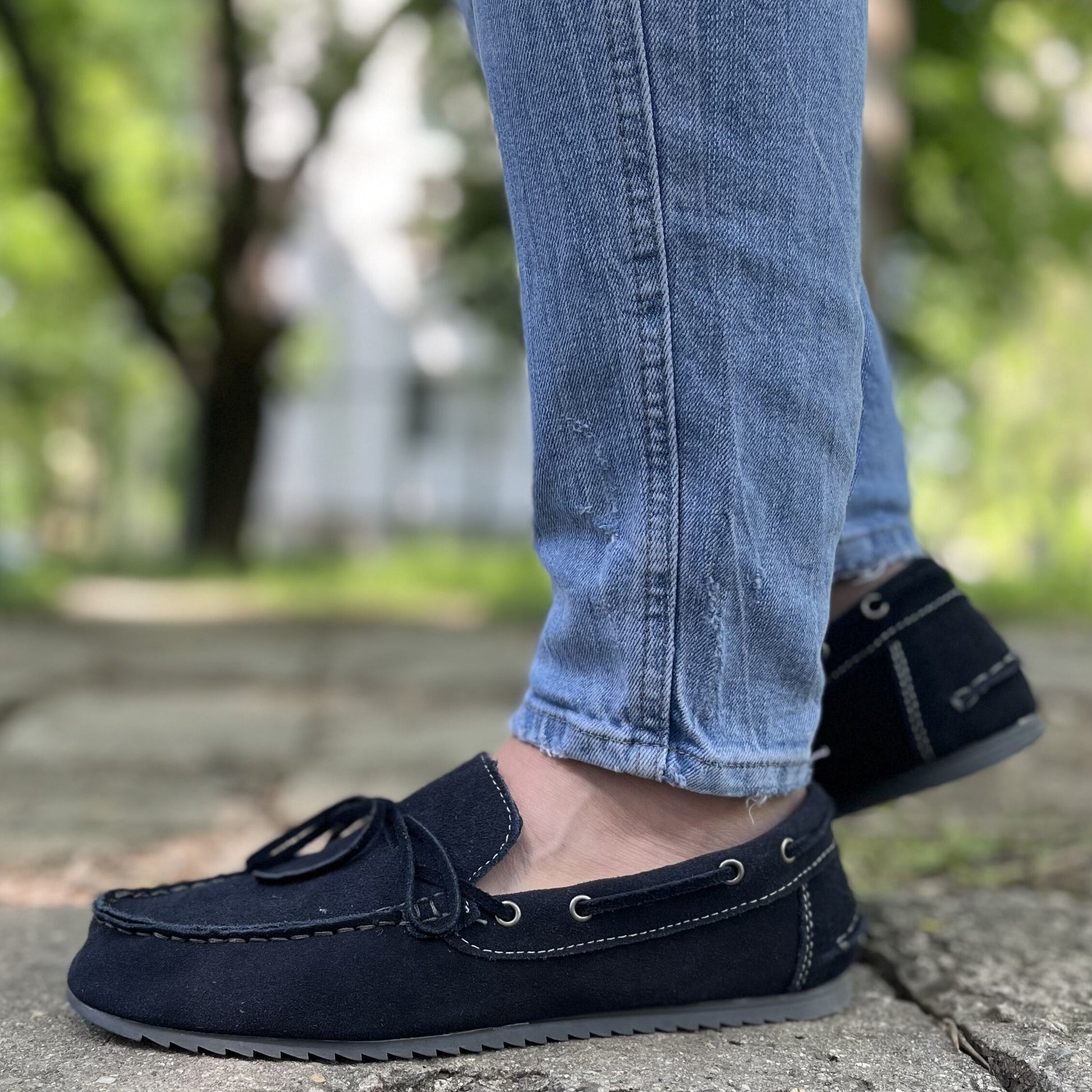 Мъжки сини мокасини от естествен велур - Rohan - Blue