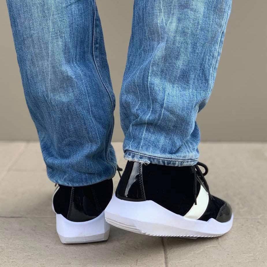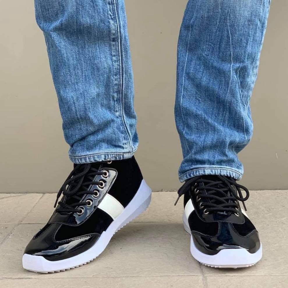 Мъжки спортно - елеганти обувки в черен цвят. Модела е висок и е изработен от велу и лак. Обувките са изключително стилни и ефектни, а също така имат и тънка подплата.